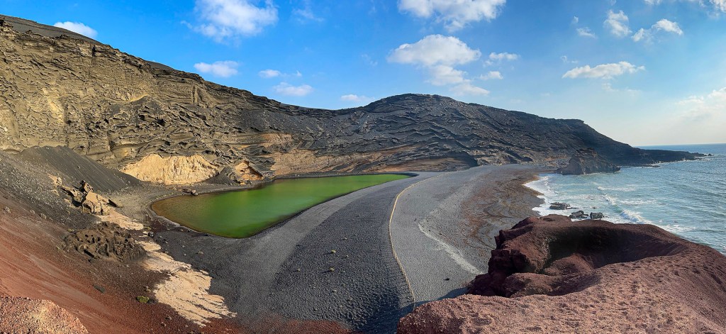 Charco de los Clicos, Lanzarote — If only I had been here 57 years ago… I might have seen Raquel Welch emerging from this green lagoon, her breasts spilling out of a fur bikini, only to be snatched from the beach by a carnivorous Pteranodon and flown to its nearby nest where the distraught “Loana the Fair One” was to be fed to the pterosaur’s offspring.