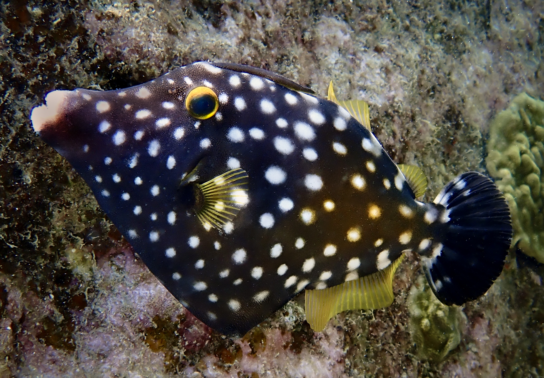 That’s all fascinating stuff, but I don’t think about science when I put on a mask and snorkel to free dive on a coral reef. Instead, I am grateful for the privilege of sharing this undersea world, so I tread softly. I enter the water quietly, with minimal gear, and move slowly. I know that everything with eyes underwater watches me to perceive what threat I might pose. I de-escalate. When I minimize my presence, fish become as interested in me as I am with them.